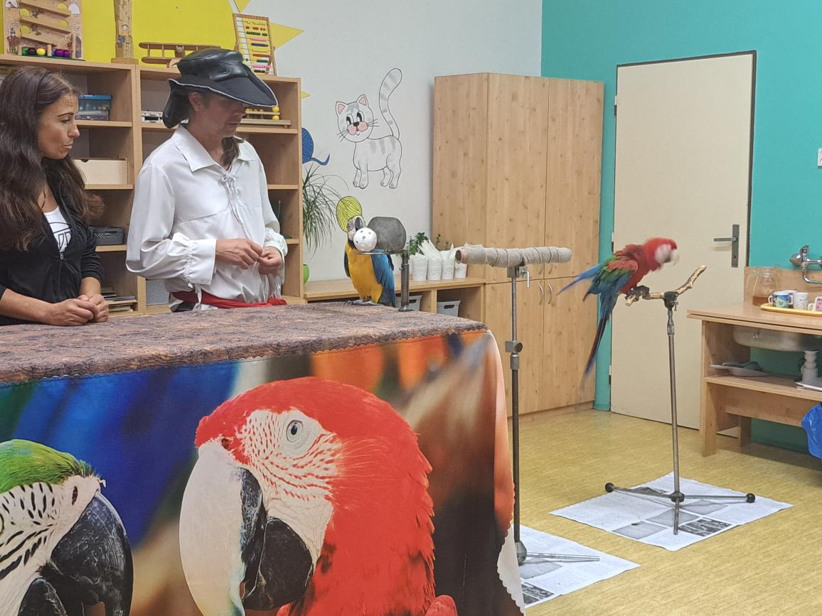 Ve čtvrtek naši školku navštívili piráti se svými kamarády papoušky Aráškem a Šmudlou.